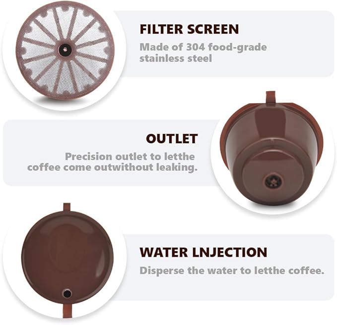 les capsules de café réutilisables sont fabriquées en matière plastique de haute qualité, ce qui peut protéger la couche filtrante de votre machine et ajouter un meilleur goût aux boissons au café. Favorise l'extraction complète de la poudre de café et conserve le goût délicat du café.
