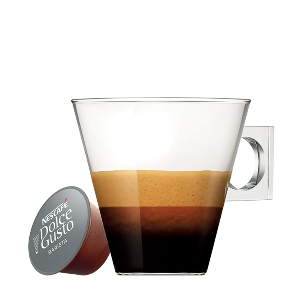 'Espresso Barista de Nescafé Dolce Gusto est un café en capsule conçu pour être préparé avec les machines à café Dolce Gusto. Il est décrit comme un espresso intense et riche, avec un corps épais et une crema dense.